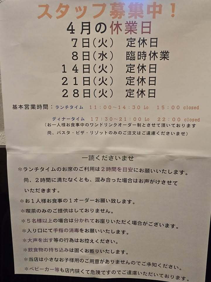 4月4日と24日はディナータイムが貸し切り予定です🙇♀️